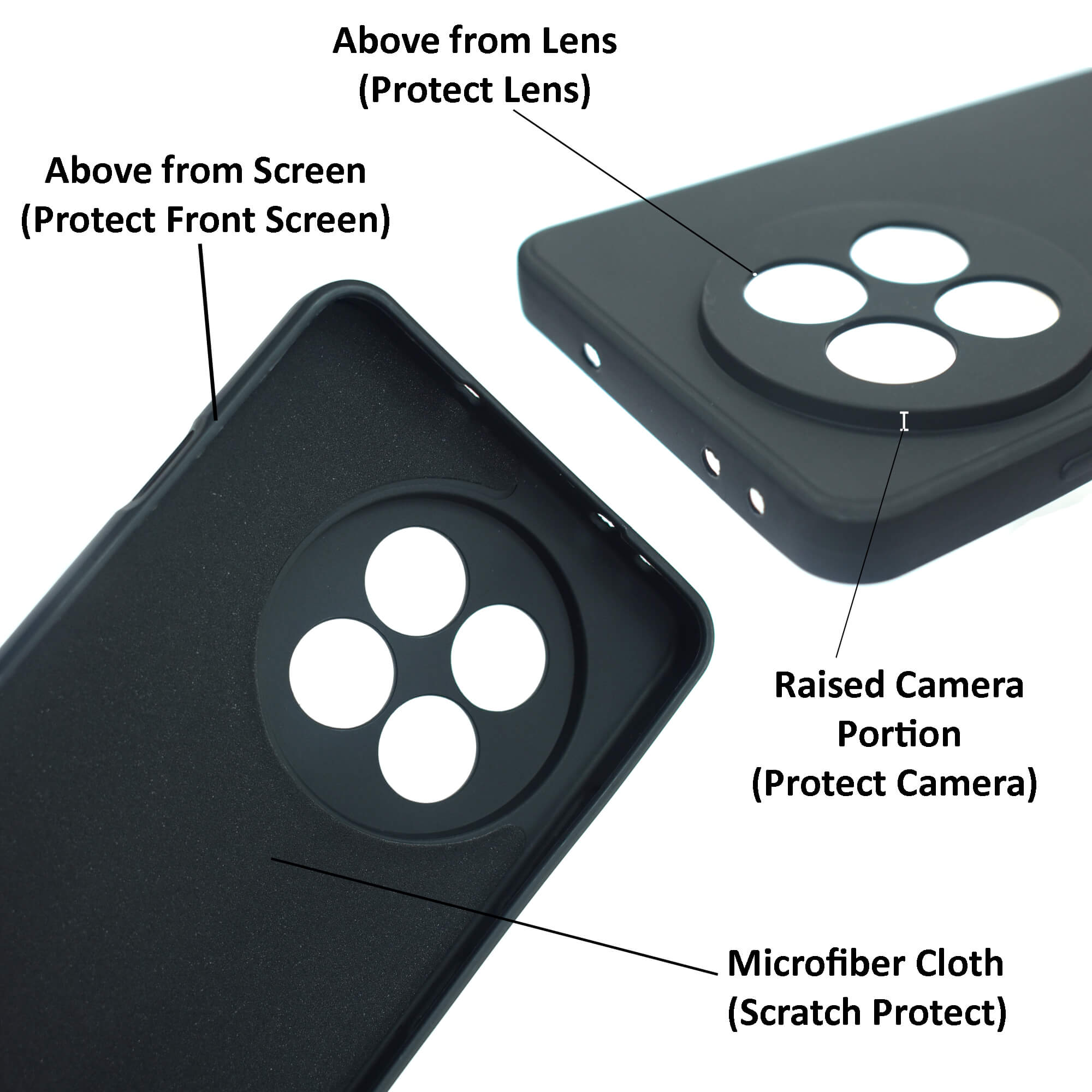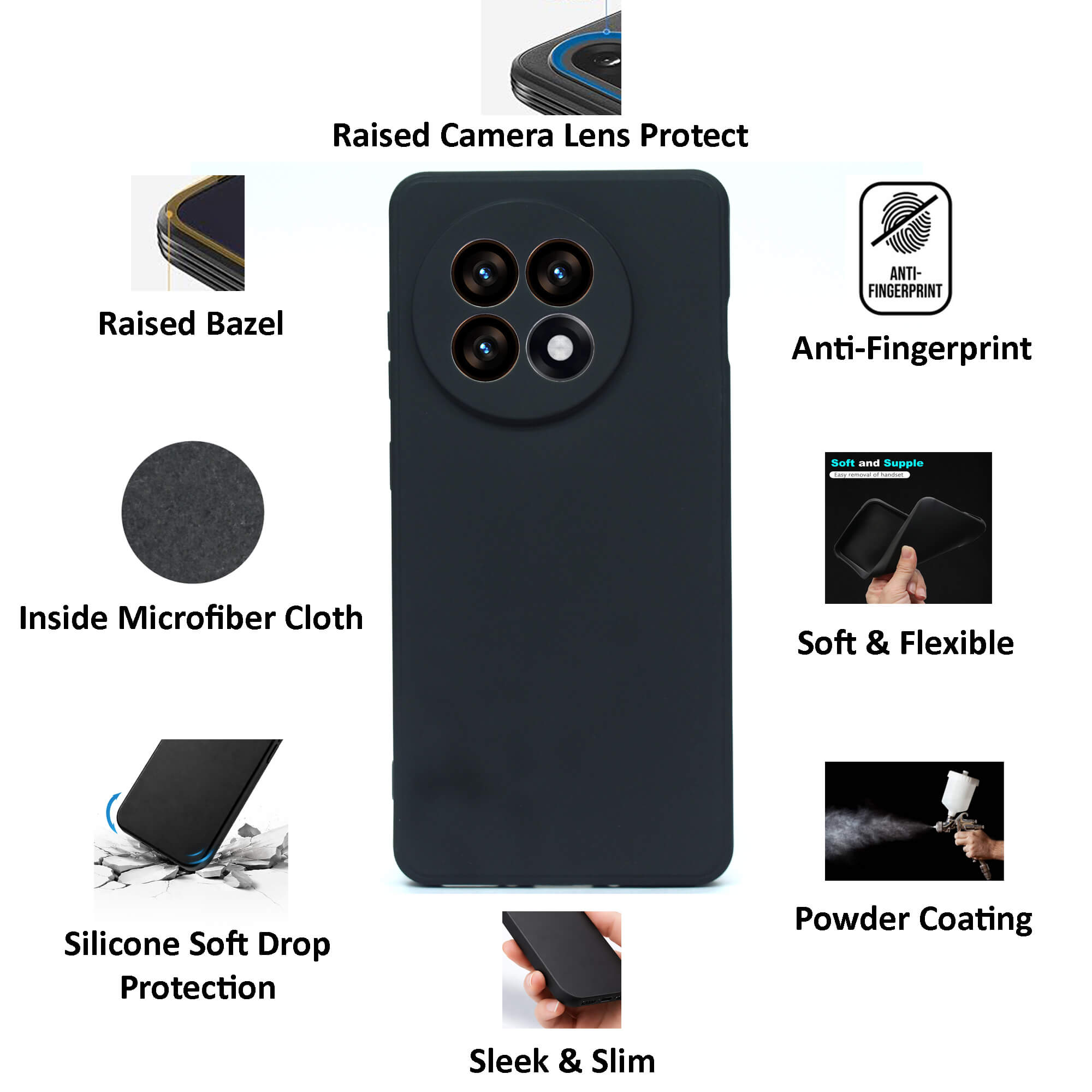 Silicone Flexible Back Cover for OnePlus 13R (5G) Mobile, Inside Microfiber Cloth, Black