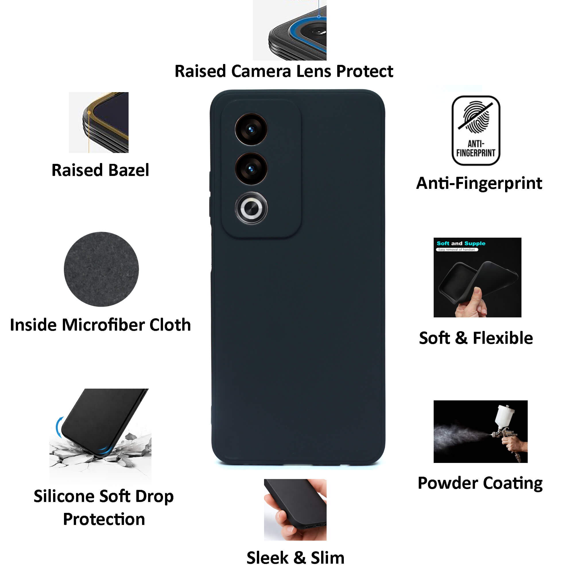 Silicone Flexible Back Cover for Oppo A3 Pro (5G) Mobile, Inside Microfiber Cloth, Black