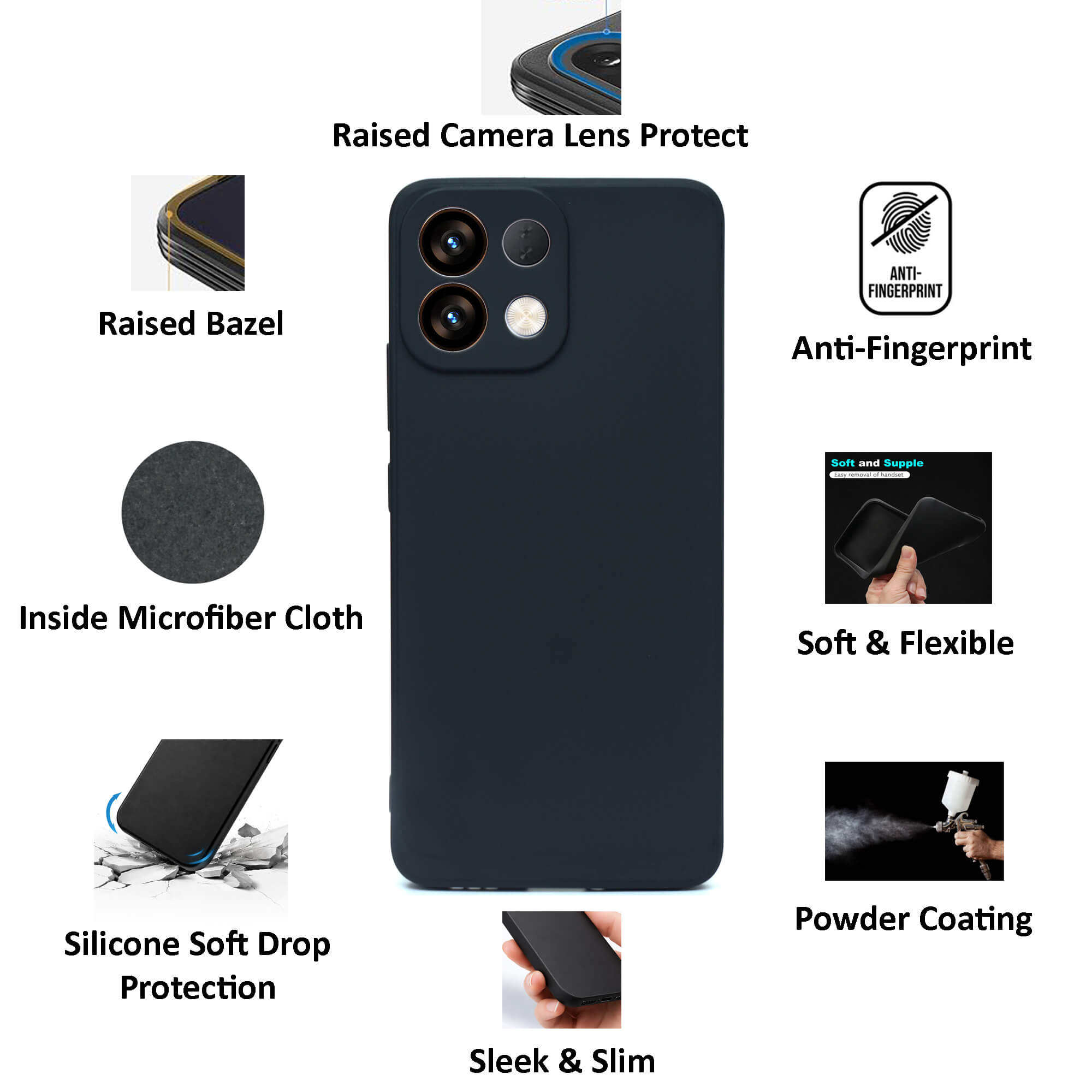 Silicone Flexible Back Cover for Oppo K13 (5G) Mobile, Inside Microfiber Cloth, Black