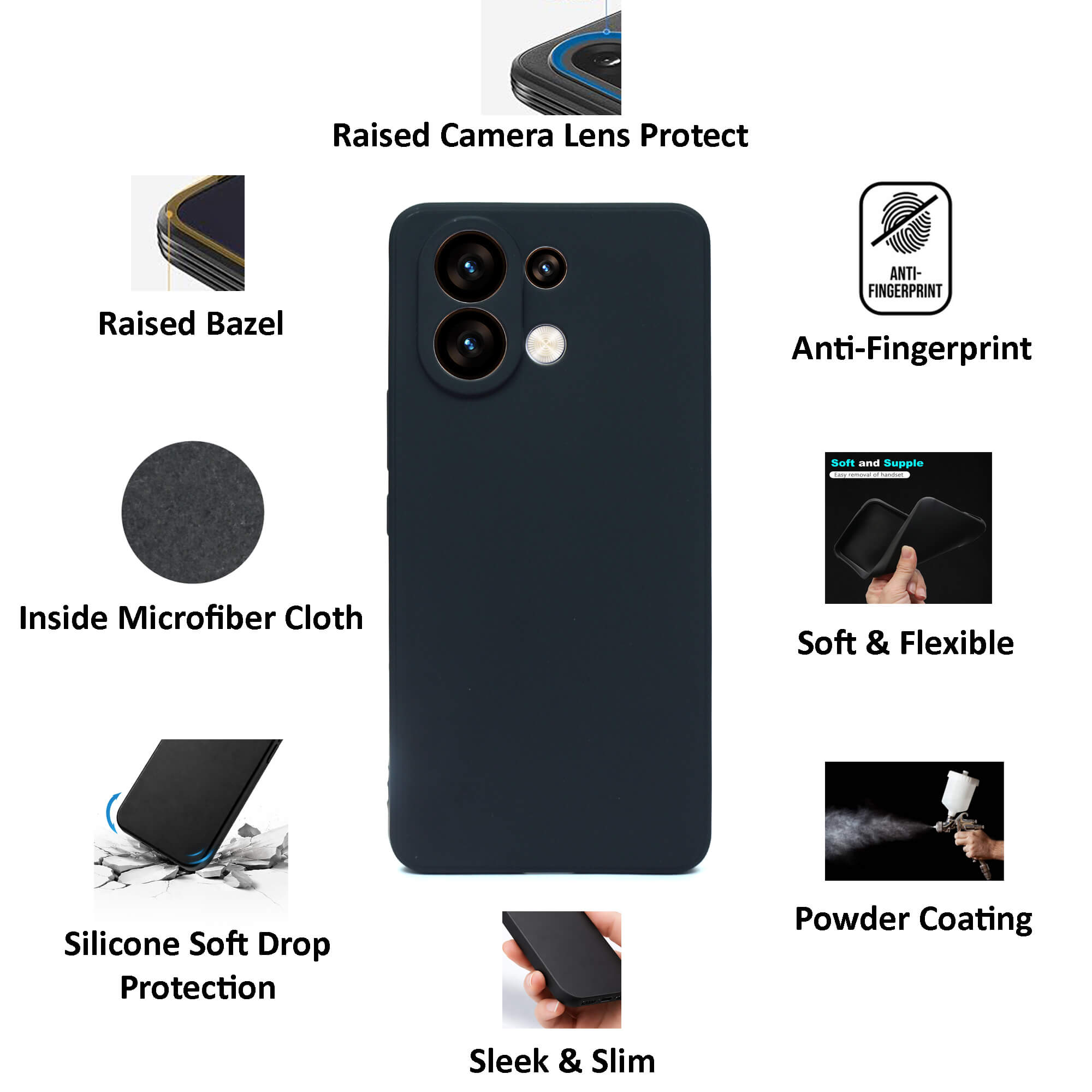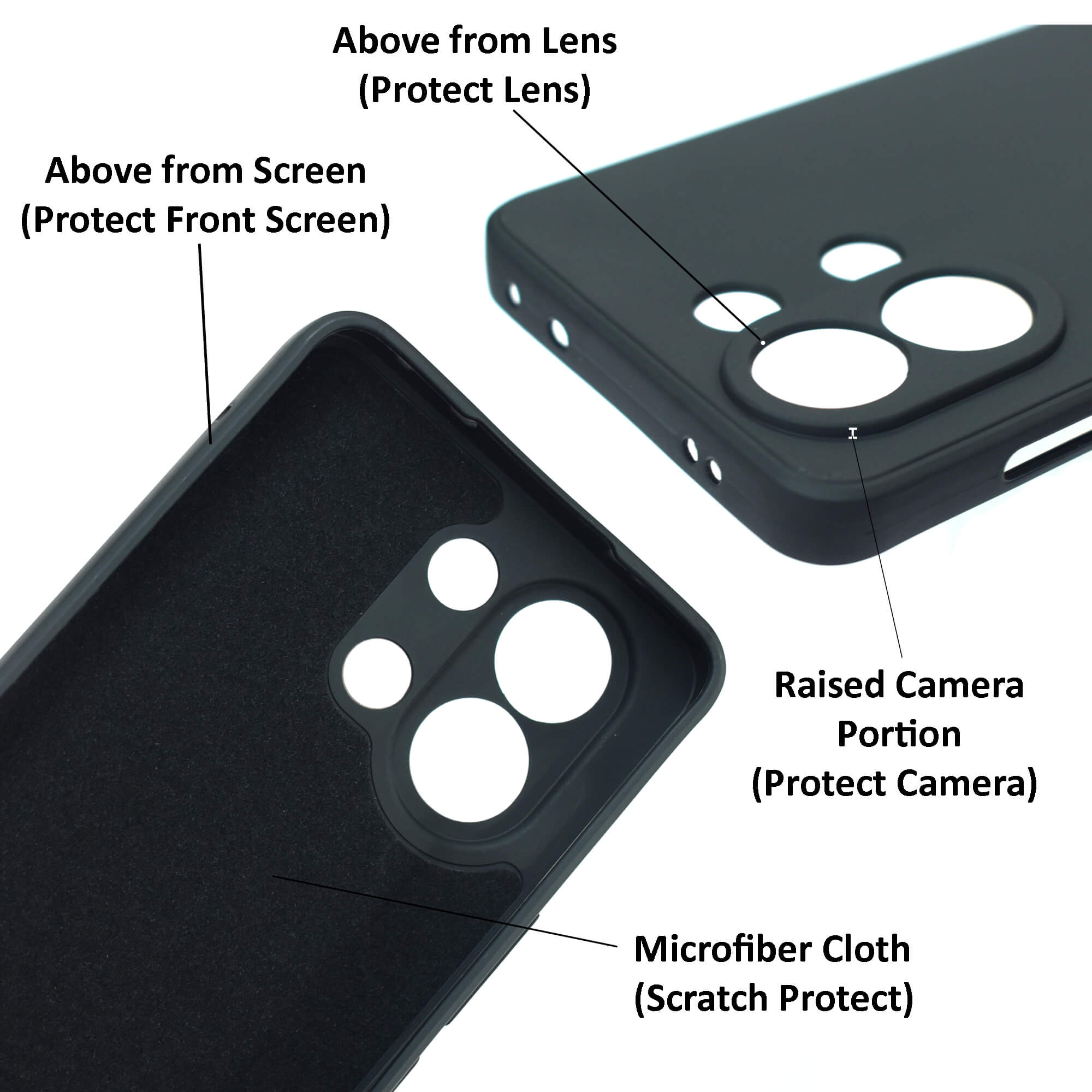 Silicone Flexible Back Cover for Oppo K13 Turbo (5G) / Oppo K13 Turbo Pro (5G) Mobile, Inside Microfiber Cloth, Black