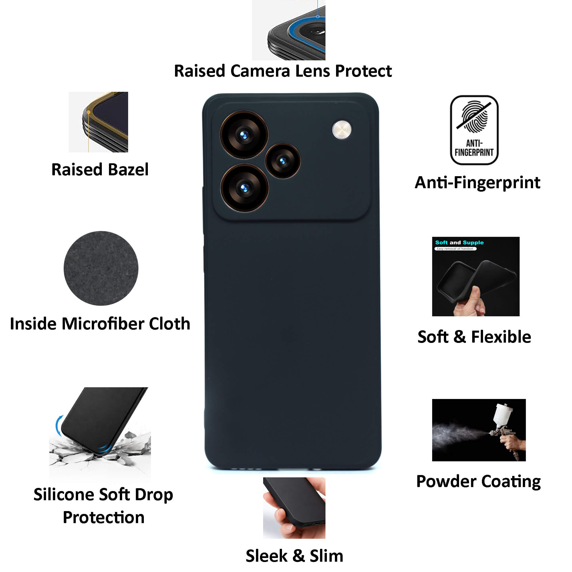 Silicone Flexible Back Cover for Realme P4 Pro (5G) Mobile, Inside Microfiber Cloth, Black