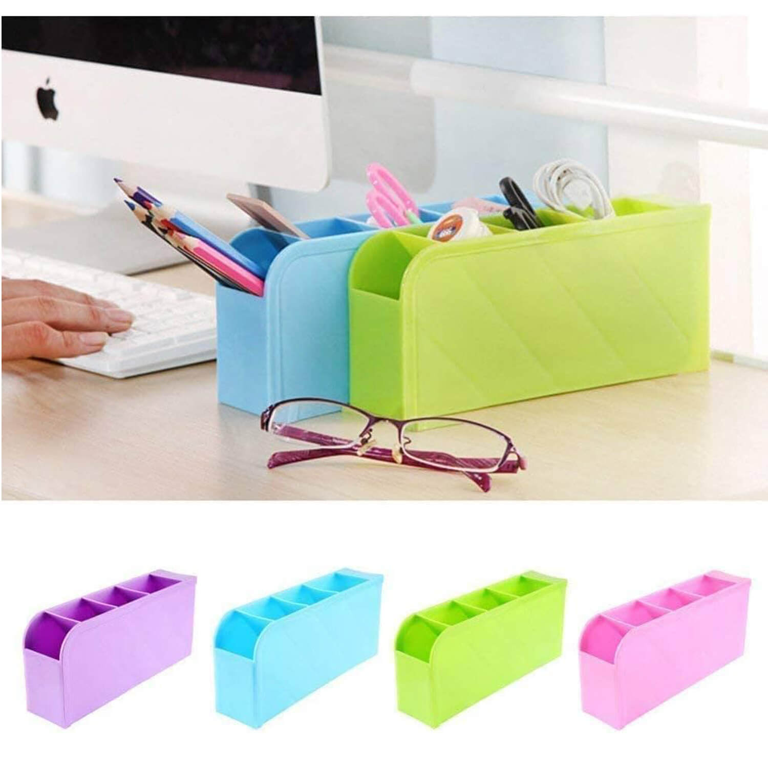 Plastic 4 Compartment Stationery Pen Stand Holder